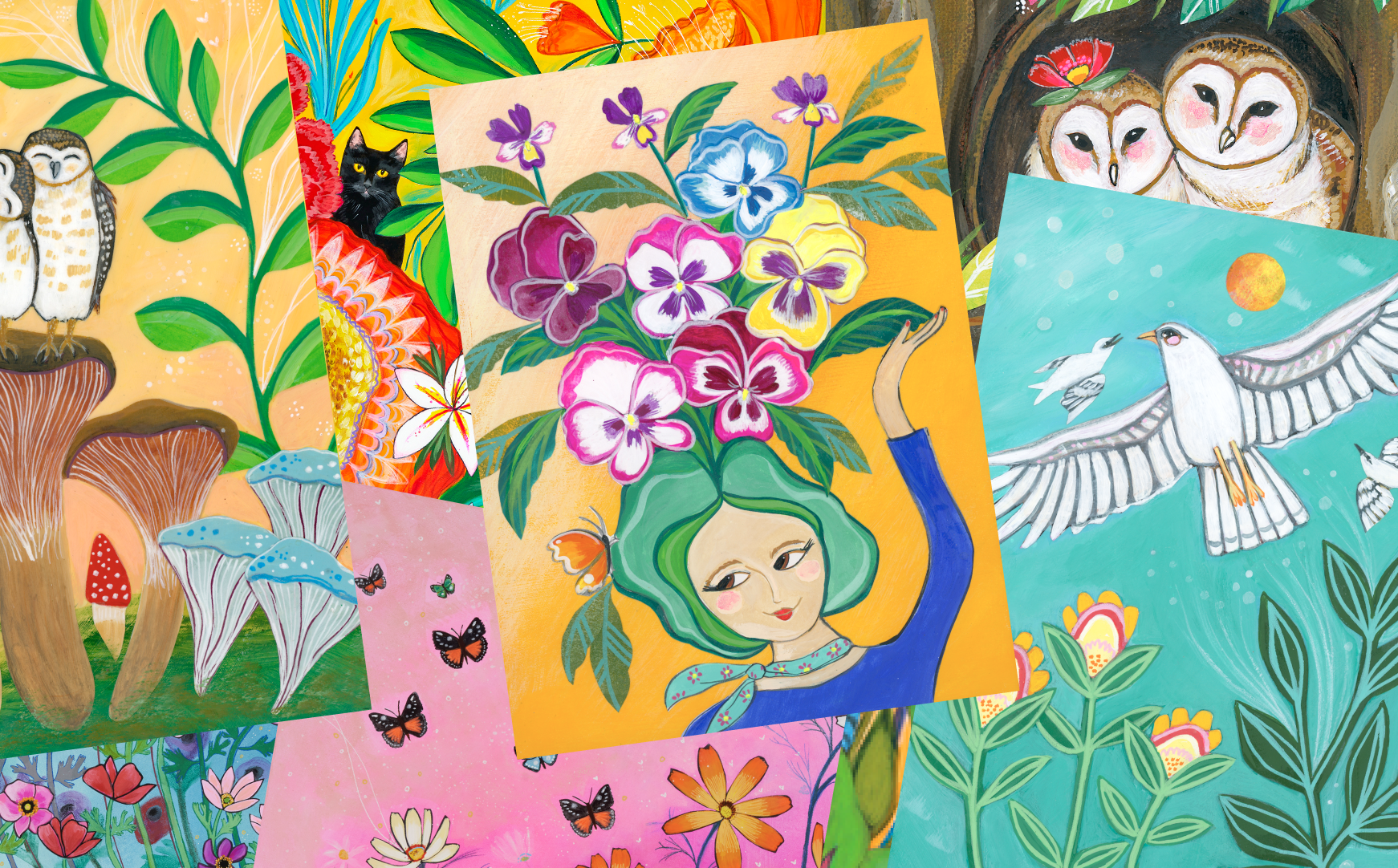 I am a modern-day folk artist who loves the beauty in nature, animals, and our connection with each other. I create art imagining a world filled with sweetness and compassion. A world that is kind and beautiful. I believe it exists all around us.