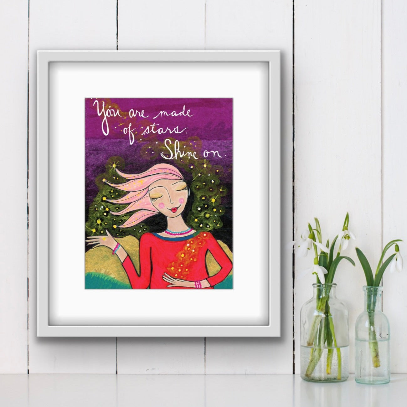 This is a museum-quality fine art print created from an original mixed-media painting. My art prints are made with archival inks making them look as much like the original artwork as possible. Each image is printed on an 8x10" sheet of archival paper and is ready for a standard 8.5x11" frame. Each art print is signed and placed in a protective cello sleeve.
