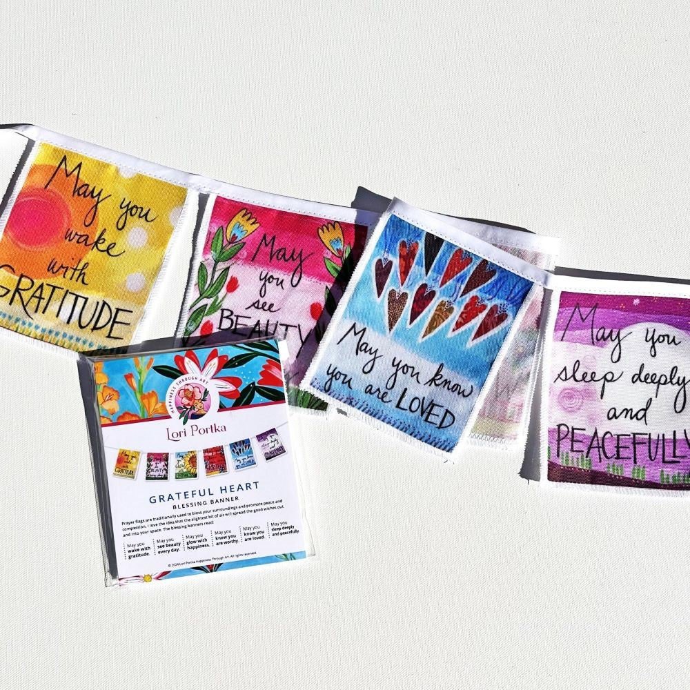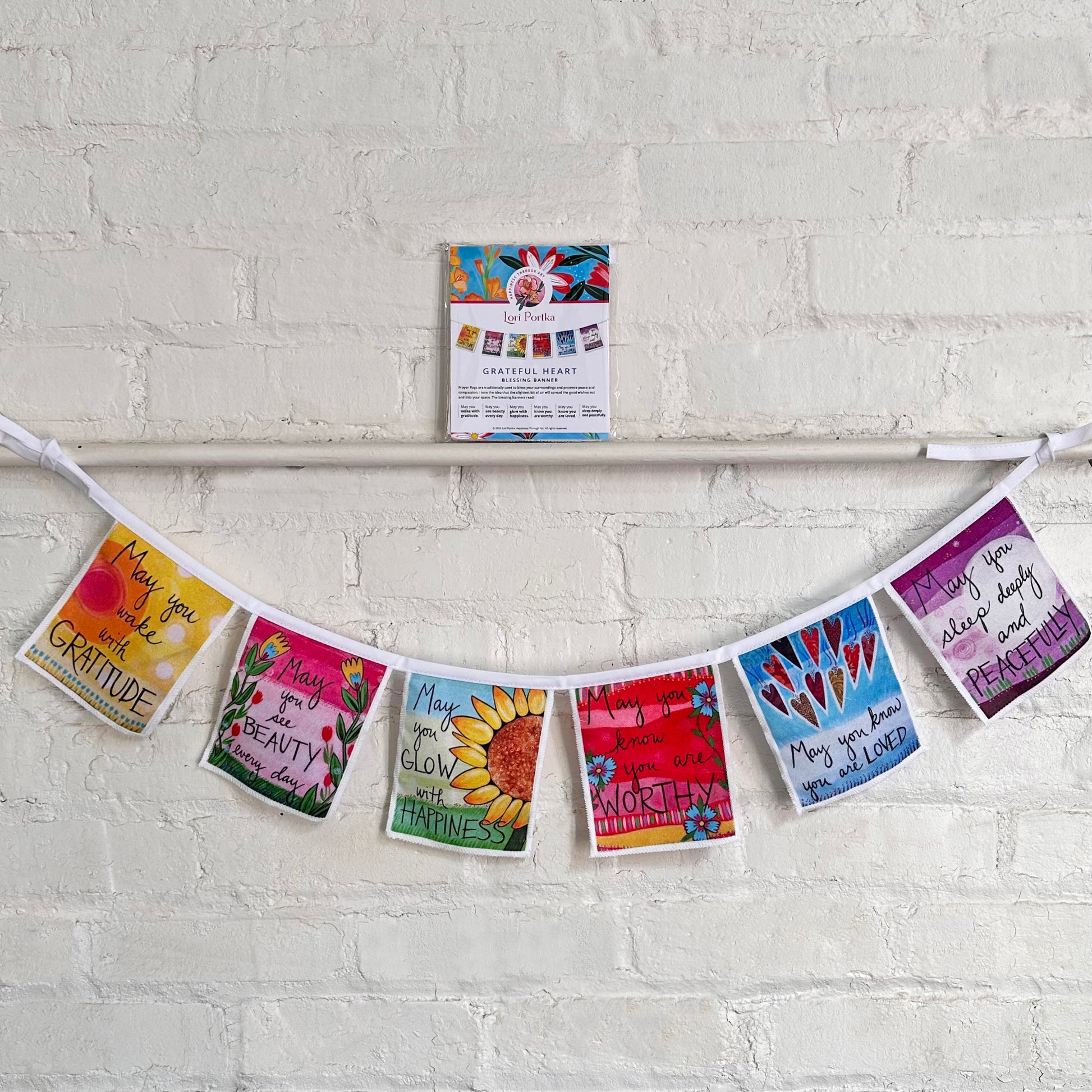 Our banners are inspired by Tibetan prayer flags that are traditionally used to bless your surroundings and promote peace and compassion. I love the idea that even the slightest bit of air will spread good wishes out and into your space.