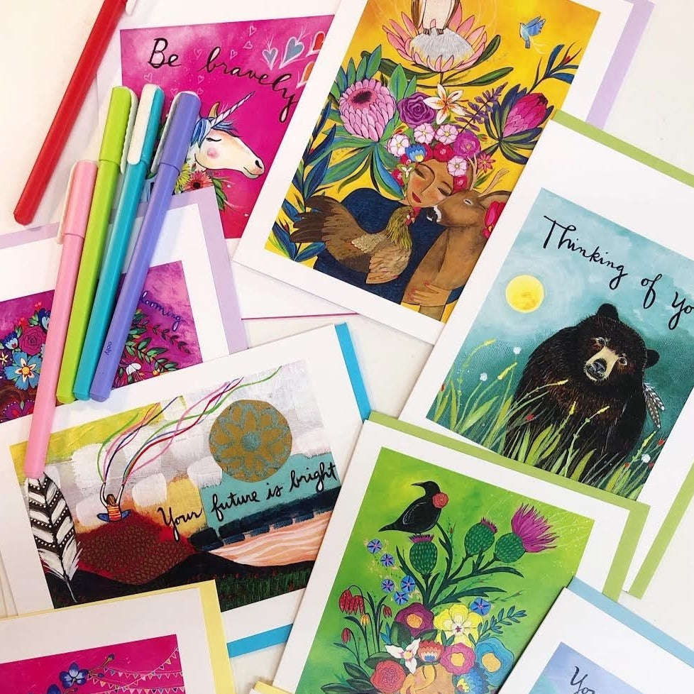 - Includes a matching colored envelope.