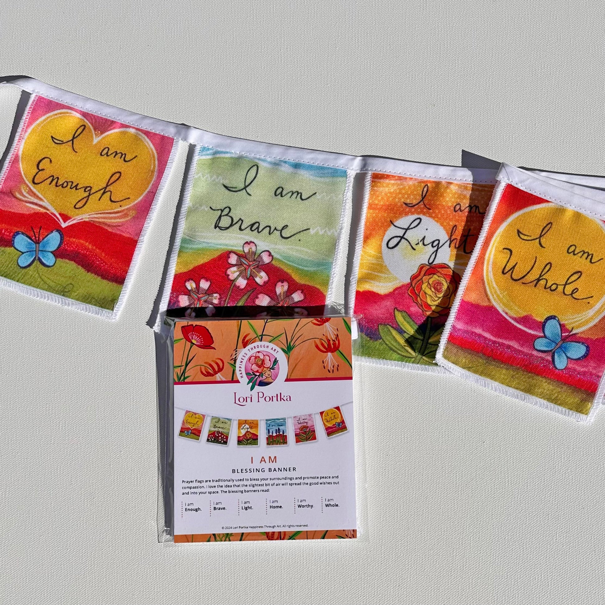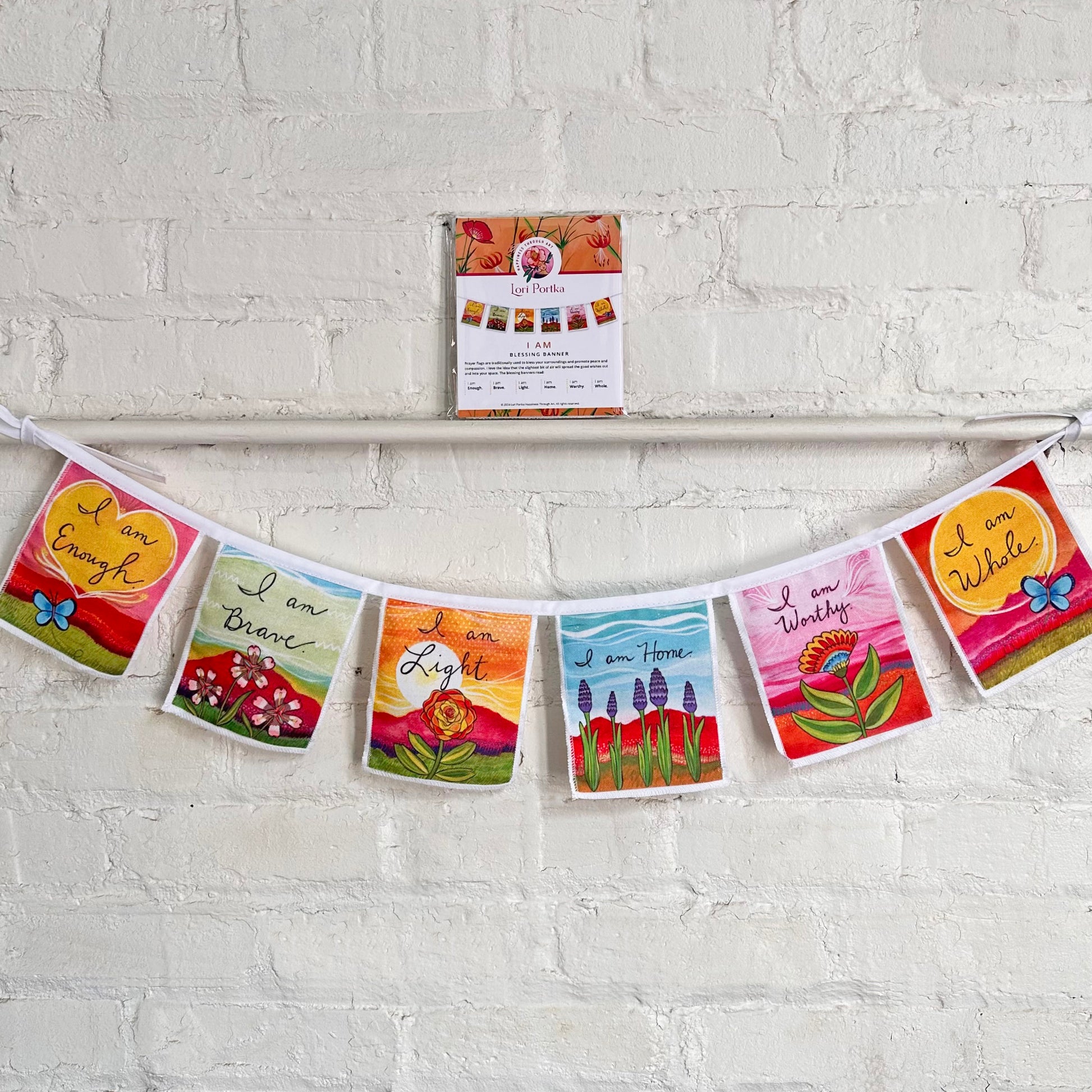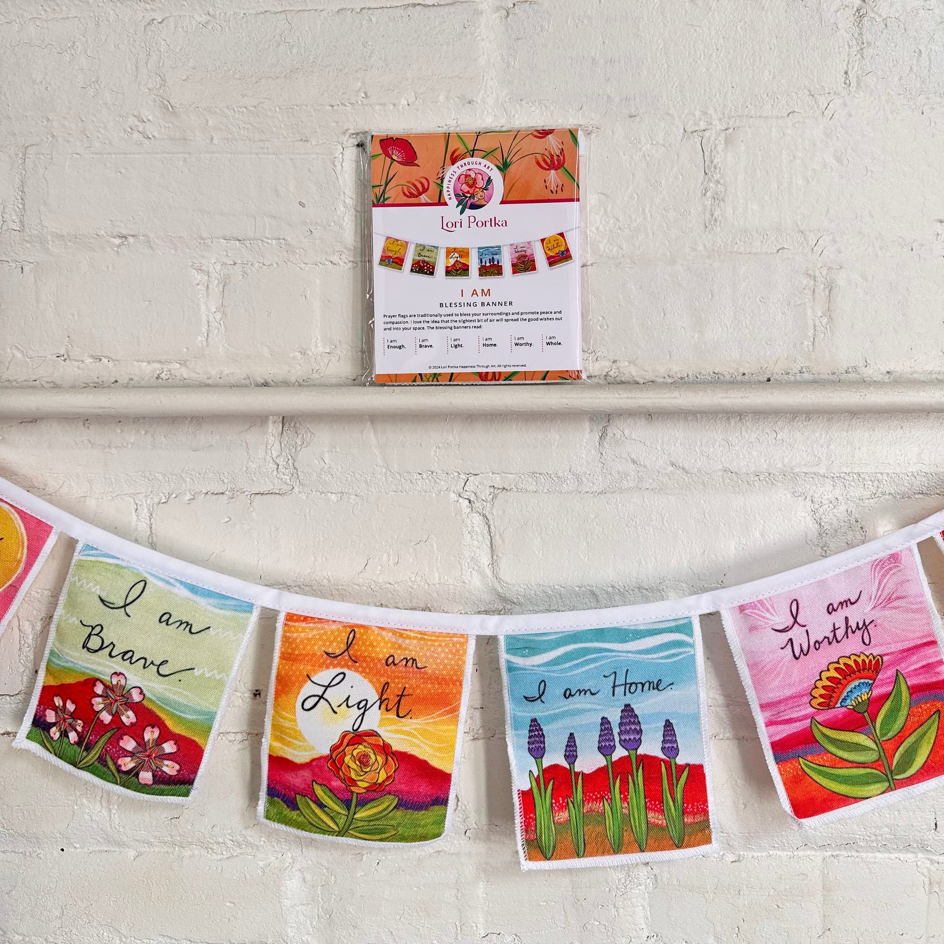 Our banners are inspired by Tibetan prayer flags that are traditionally used to bless your surroundings and promote peace and compassion. I love the idea that even the slightest bit of air will spread good wishes out and into your space.