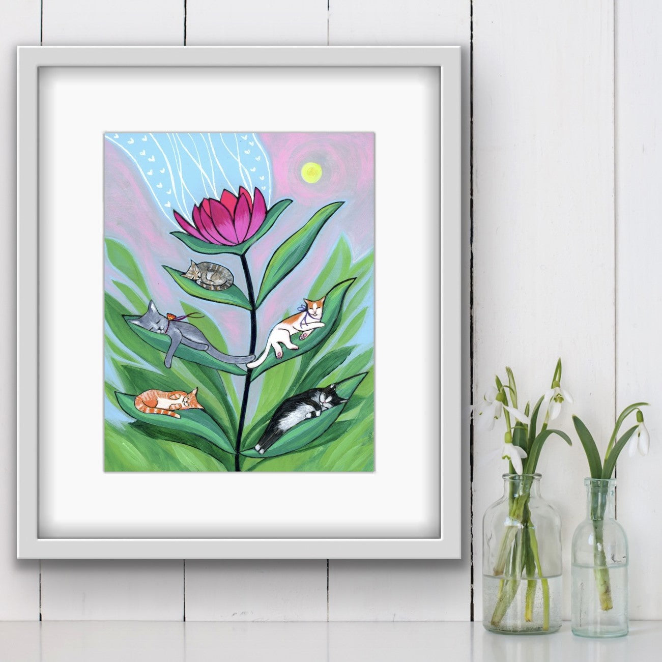 This is a museum-quality fine art print created from an original mixed-media painting. My art prints are made with archival inks making them look as much like the original artwork as possible. Each image is printed on an 8x10" sheet of archival paper and is ready for a standard 8.5x11" frame. Each art print is signed and placed in a protective cello sleeve.