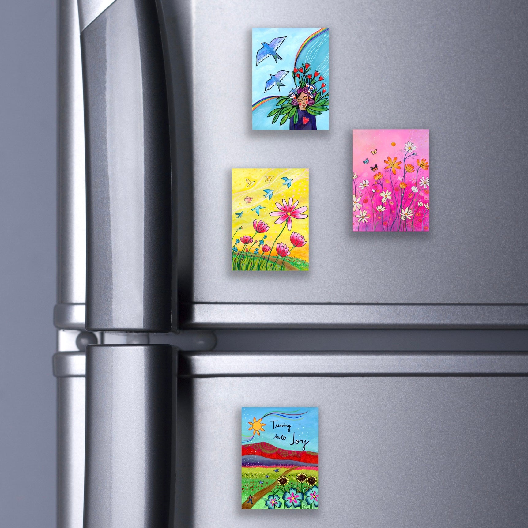 Our magnets are light and flexible, yet strong and sturdy. Each Magnet is printed with our classic vibrant colors and positive inspirational images and themes. Images are created from hand-painted original art. Choose from 24 different designs.