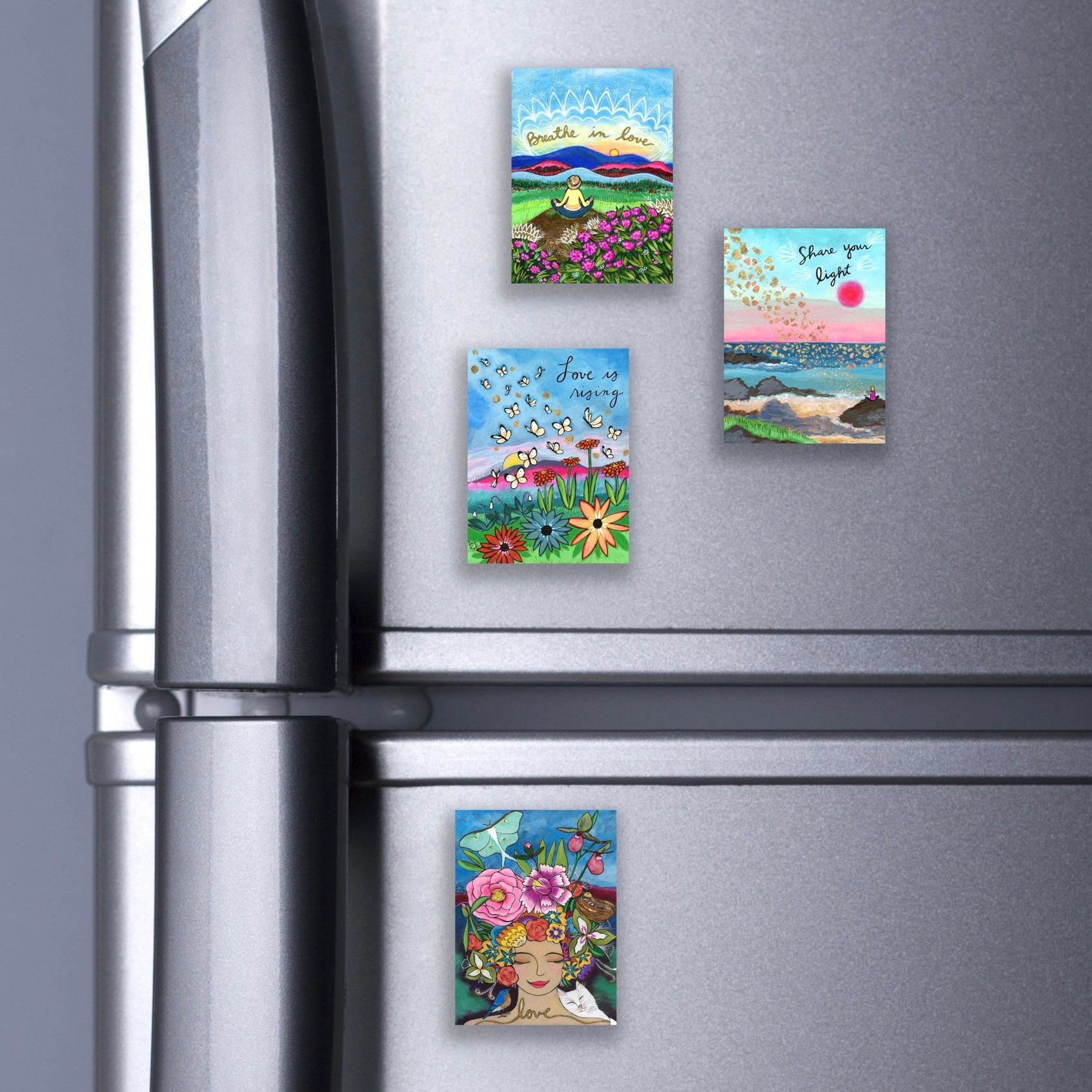 Our magnets are light and flexible, yet strong and sturdy. Each Magnet is printed with our classic vibrant colors and positive inspirational images and themes. Images are created from hand-painted original art. Choose from 24 different designs.