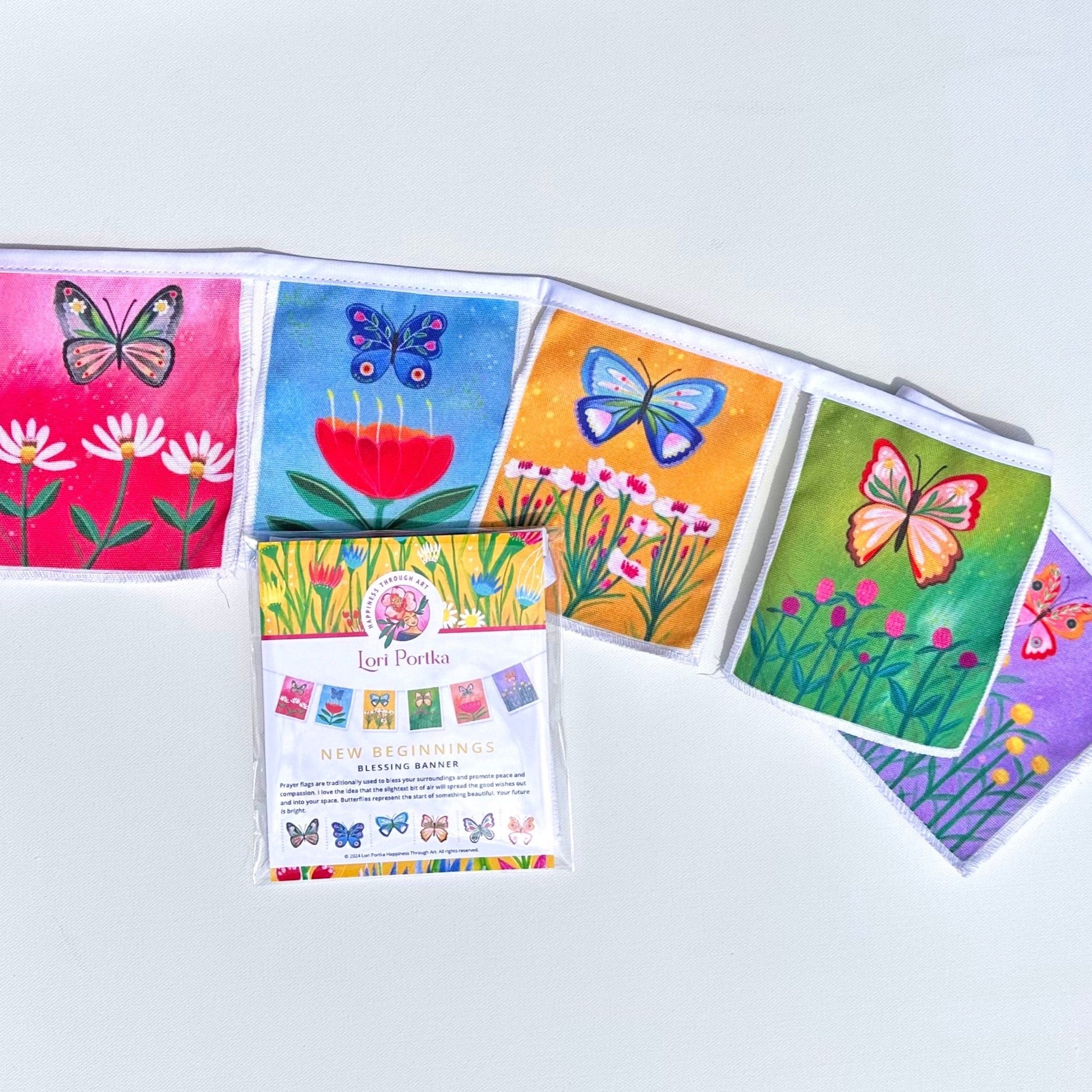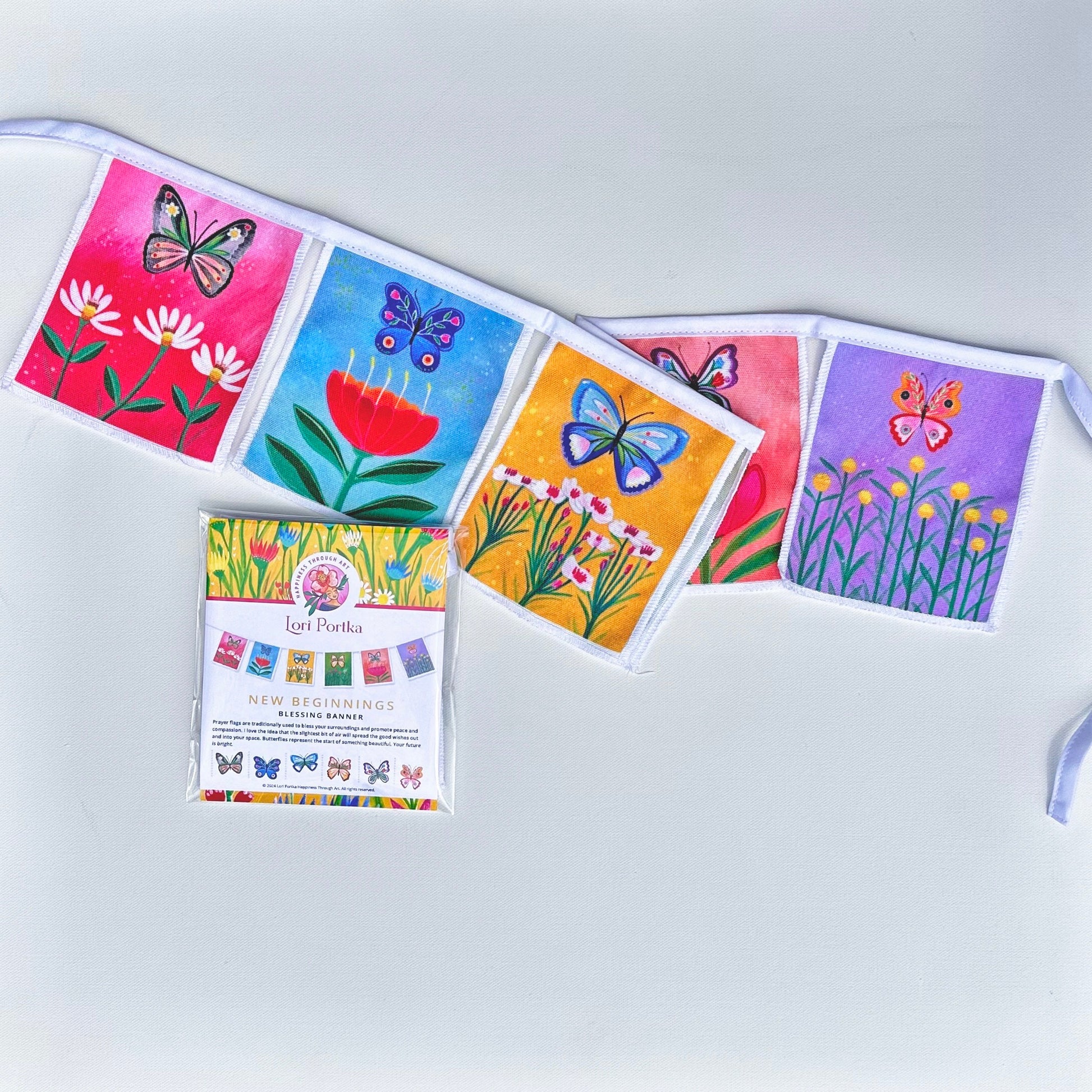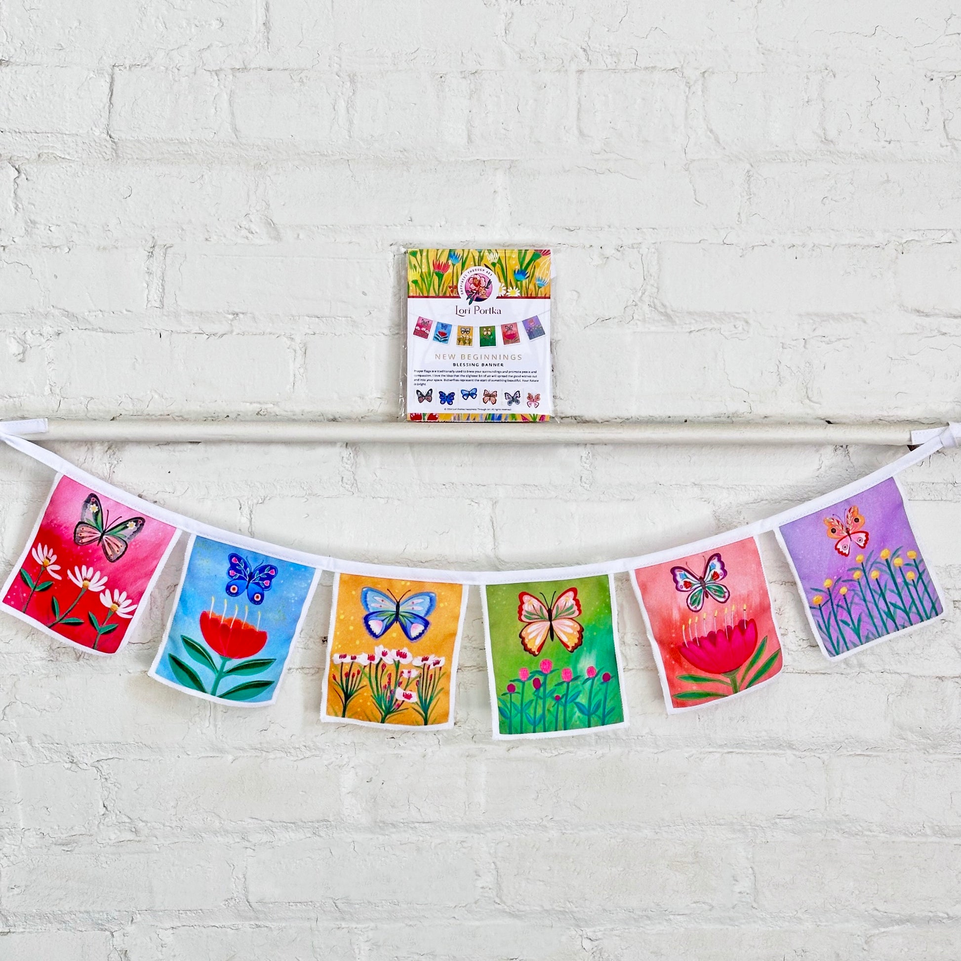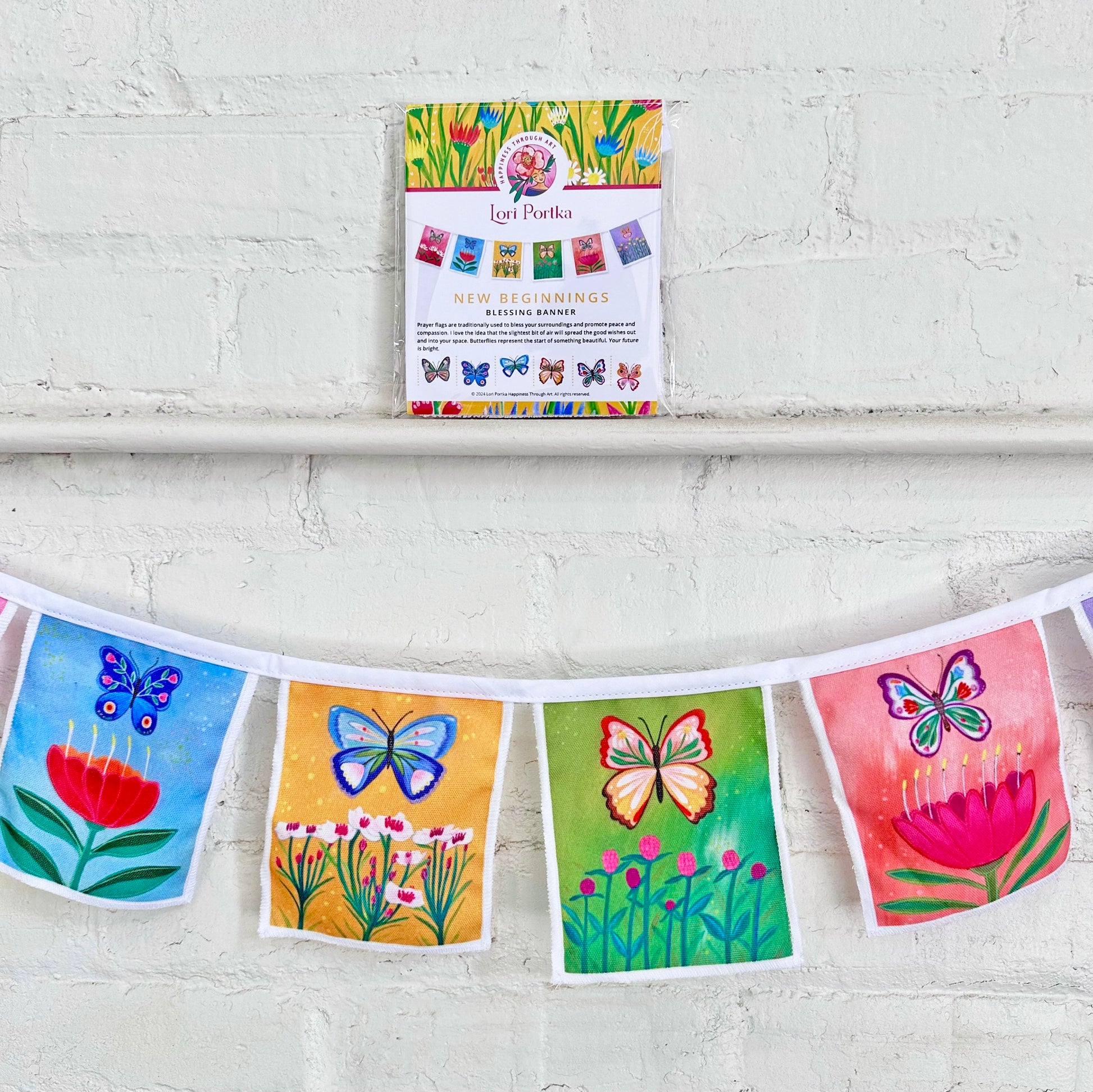 Our banners are inspired by Tibetan prayer flags that are traditionally used to bless your surroundings and promote peace and compassion. I love the idea that even the slightest bit of air will spread good wishes out and into your space.
