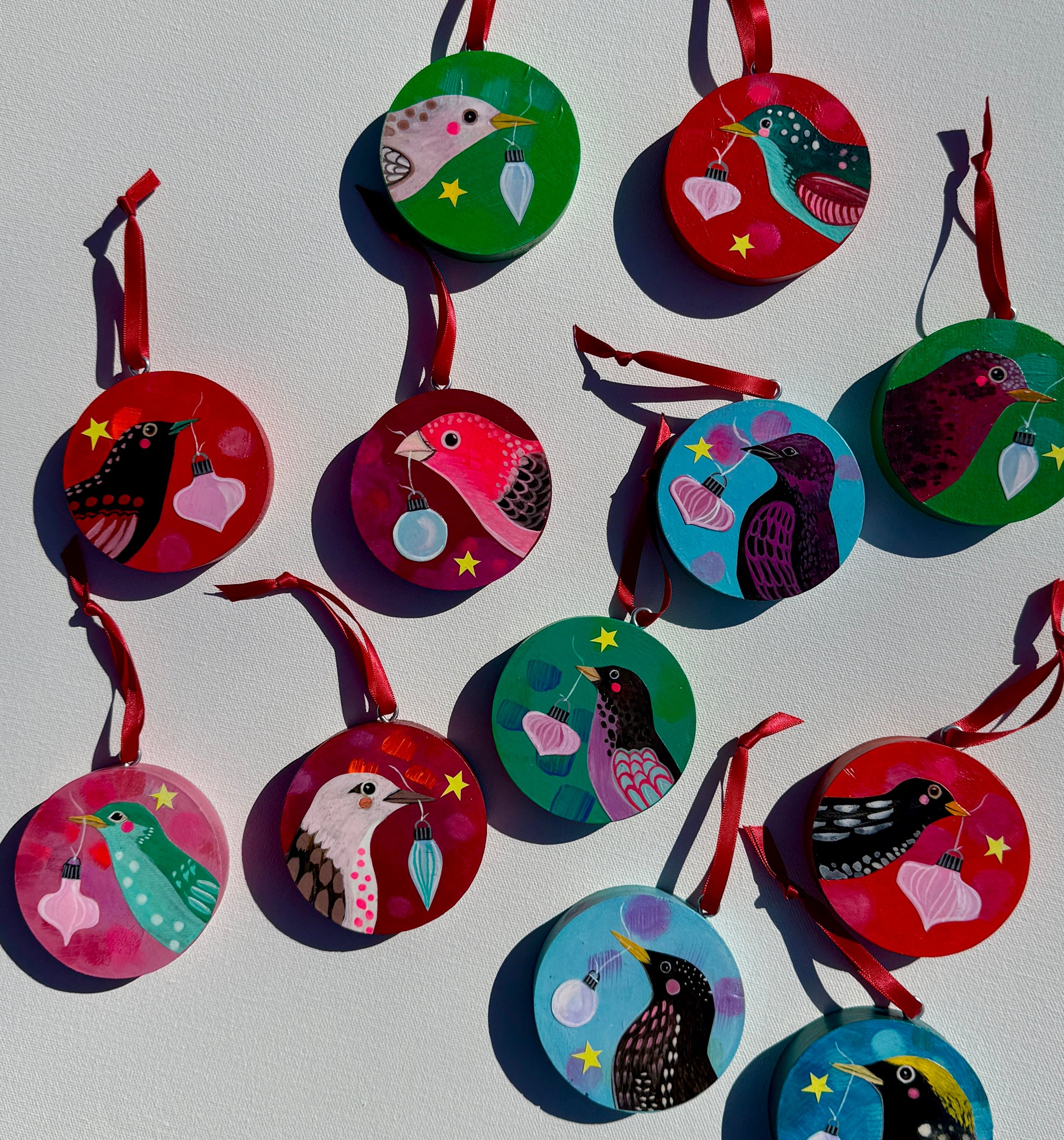 For years I have wanted to make hand-painted ornaments. My plan is to make a new set each year to collect! So this is the first year! YAY! I only have 12 of them. They are all one-of-a-kind little original paintings.