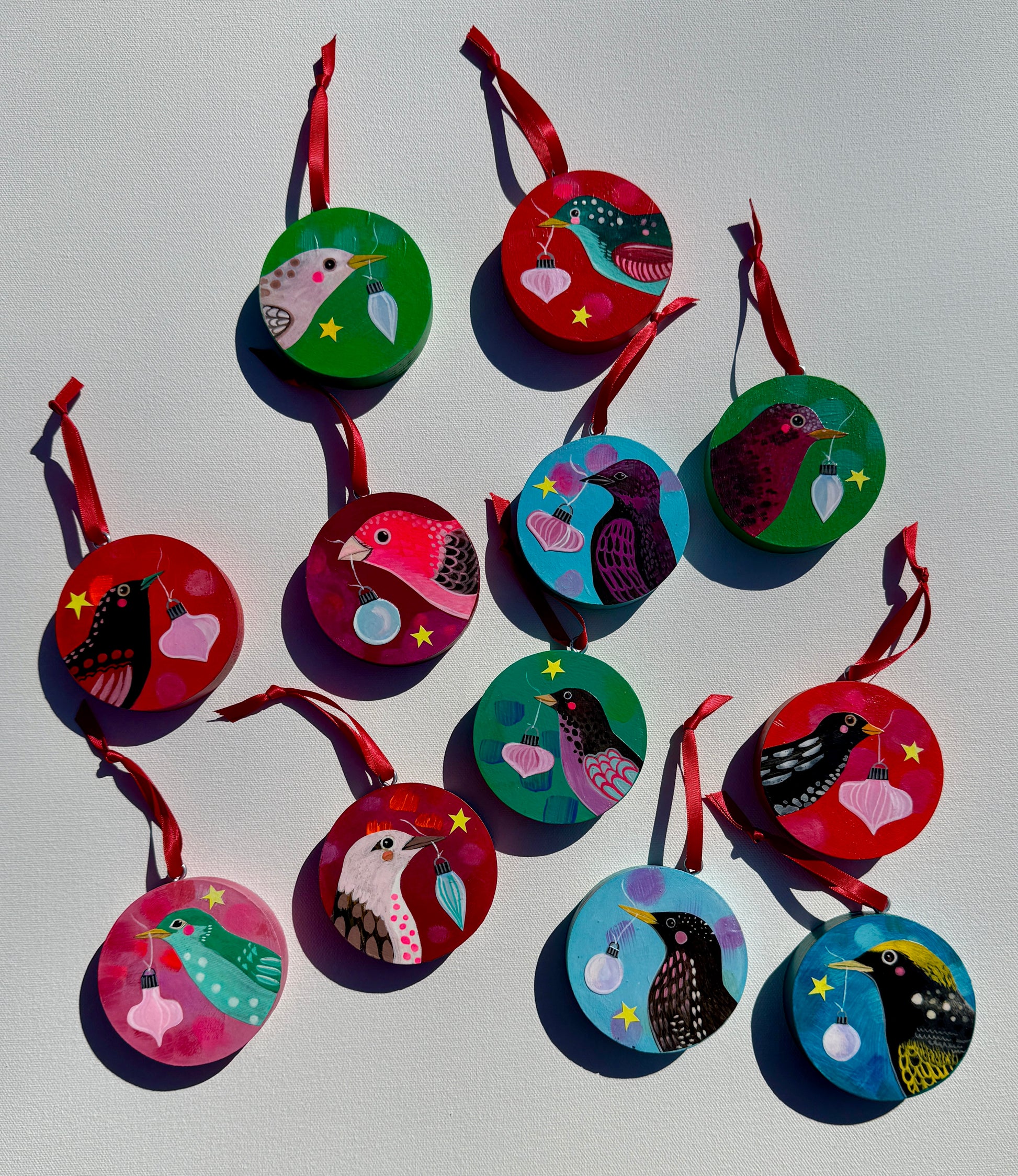 For years I have wanted to make hand-painted ornaments. My plan is to make a new set each year to collect! So this is the first year! YAY! I only have 12 of them. They are all one-of-a-kind little original paintings.