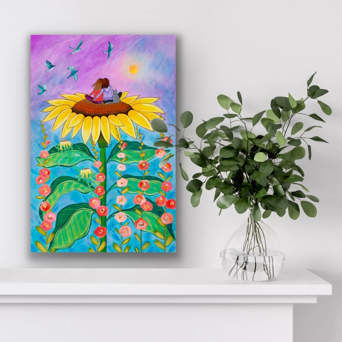 I noticed with this painting that I kept wanting to add more color to the bottom half and background but the hummingbirds deserve all the brightness and attention in this one! Always in My Heart is one of my many ready-to-hang, high-quality, giclée wood print collection images.
