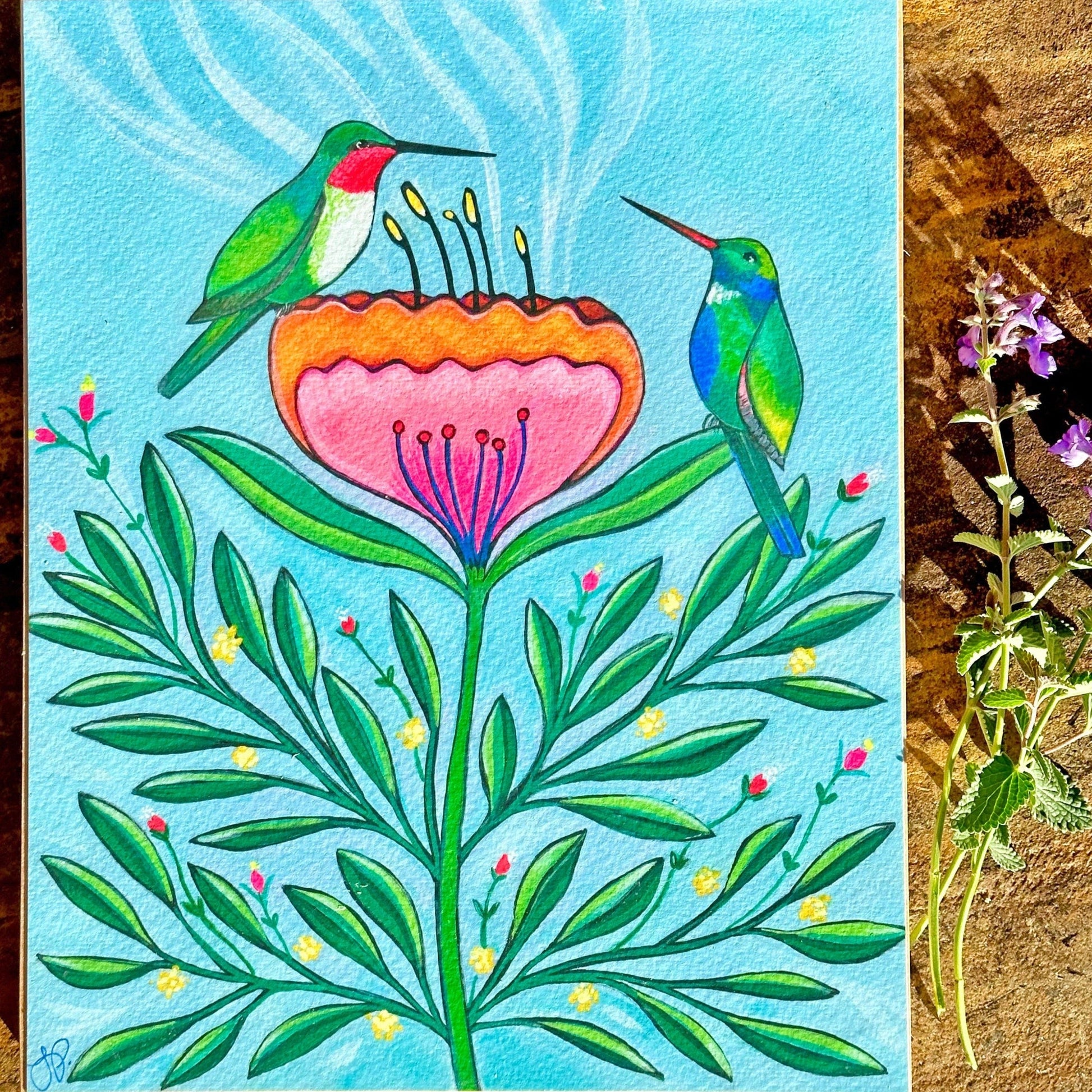 My assistants carefully glue each print to a cradled wood board in my studio and I add hand-painted embellishments. Once that is dry, I add several layers of a UV-protective acrylic topcoat to the whole piece. The sides are varnished wood finish and are 3/4".