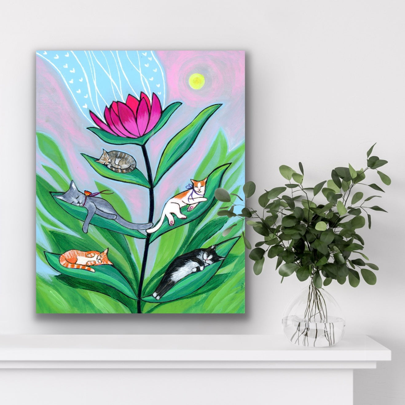 I love cats and cat naps! I started this painting when I was watching the Taylor Swift documentary. Seeing the adorable cat on her piano at the very beginning was the inspiration.