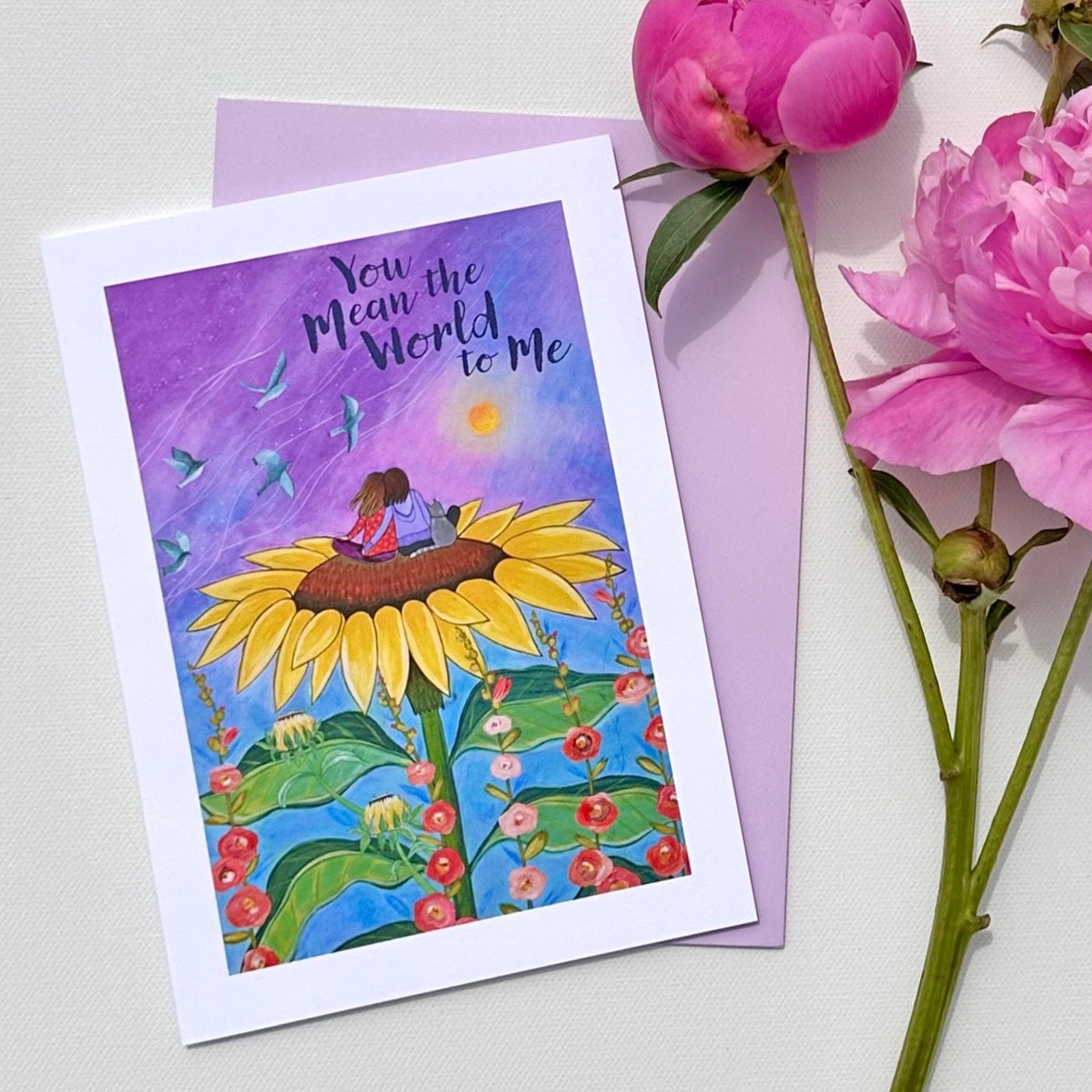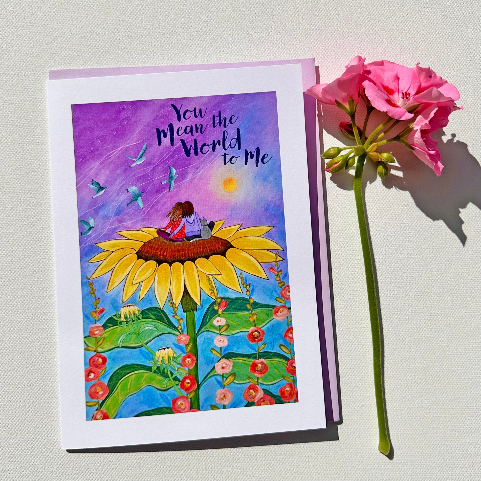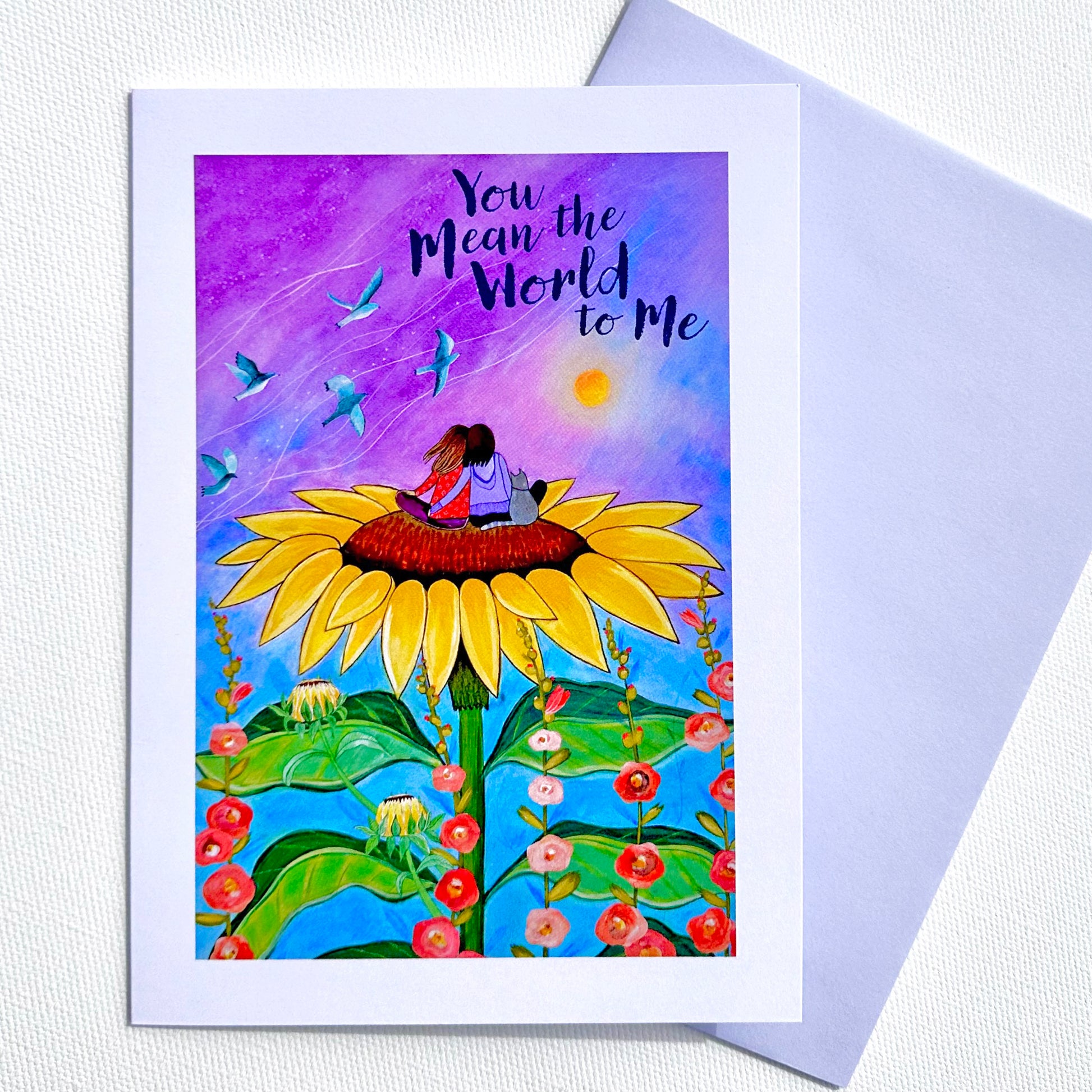 The front of this greeting card reads You Mean the World to Me.